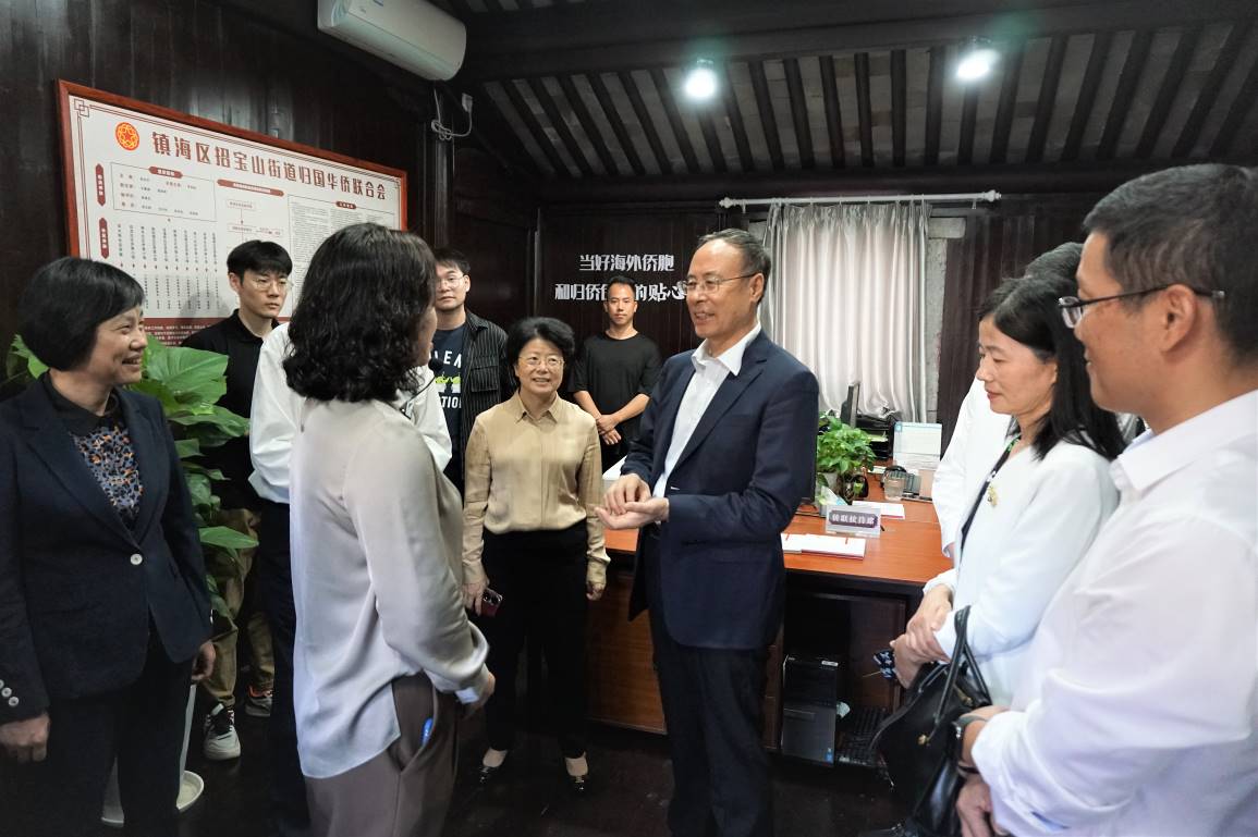 在招宝山街道后大街社区,万立骏听取街道和社区侨联负责人工作汇报,走进侨胞之家,察看工作阵地,同侨胞代表和基层同志交谈。万立骏指出,侨联是群团组织,基层侨联干部兼职较多。没有情怀、没有责任心,很难做好基层侨联工作。招宝山街道侨联组织健全,阵地条件好,工作活跃,值得肯定。侨胞之家搭建了一个很好的平台,通过开展活动、提供服务,让侨胞感受到党和政府的温暖,激发侨胞报效祖国、建设家乡的热情和干劲,希望你们再接再厉,把基层侨联工作做得更好。