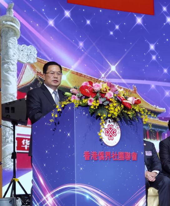 程学源表示,中国侨联是党和政府联系归侨侨眷和海外侨胞的桥梁纽带。今年8月,第十一次全国归侨侨眷代表大会在北京人民大会堂隆重召开,习近平等党和国家领导人到会祝贺,李希同志代表党中央致词。站在新的历史起点上,中国侨联将全面贯彻落实十一代会精神,继续支持香港侨界社团联会工作,支持香港侨界在推动香港高质量发展中发挥积极作用。程学源向香港侨界提出了四点希望:一是希望香港侨界同胞一如既往的坚决拥护"一国两制"方针,落实"爱国者治港原则",支持特区政府依法施政,为香港高质量发展不懈努力;二是希望香港侨界同胞深刻认识国家和世界发展大势,将个人发展融入到国家和民族事业中,积极融入国家发展大局,推进中国式现代化,参与"一带一路"和粤港澳大湾区建设,为实现民族复兴贡献侨界力量。三是希望香港侨界同胞发挥融通中外的优势,面向世界讲好中国故事、香港"一国两制"的故事和新时代香港故事。建设和谐侨社,促进社会和谐稳定,为营造包容和谐的社会氛围作出新贡献。四是希望香港的侨界青年增强民族自豪感和主人翁意识,厚植家国情怀,锤炼过硬本领,抓住新时代新的发展机遇自强不息、善拼敢赢。