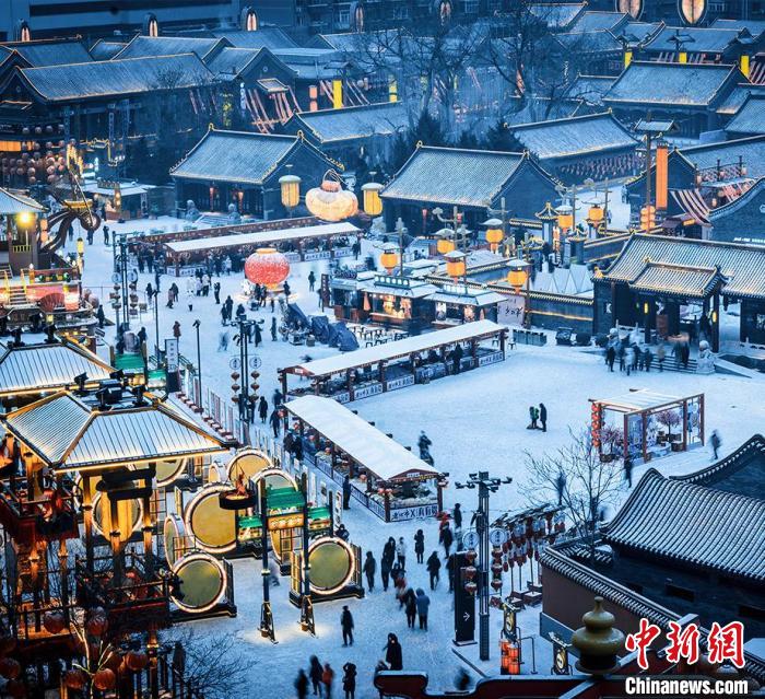 11月27日至12月3日,“追梦中华·开放与创新的辽沈大地”——2023海外华文媒体采访行走进辽宁。图为雪后老北市。主办方供图
