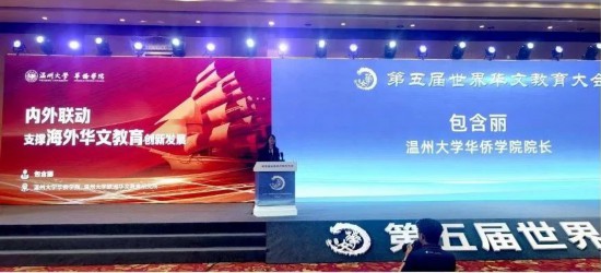温州大学华侨学院院长包含丽代表温州大学,作为全国500家华文教育基地代表、全国高校代表,在大会开幕式上做主旨发言,得到与会听众热烈反响。