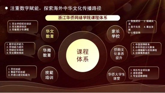 温州大学持续更新教育理念、更新网络课程体系建设、更新家校共育模式。一是教师培养以师资研习培训为基础,打造中华文化传播的“示范性”样版。学校开展3期海外华文教师线上研习班、海外华文教师师资研修班等培训,服务36个国家和地区、152所海外华校、450余人次。二是学生课程以文化融入为载体,创新中华文化传播“软输出”模式。学校自主研发《小学数学》《趣味汉字》等课程,将中华文化融入到数学教育之中。三是家长教育以家校共育为抓手,构筑中华文化传播“双循环”格局。学校开创了华文教育的温州模式,提出的“家校共育华文教育模式”受到学界高度认可。四是侨务资源涵养以调研基地为支撑,探索中华文化传播“规范化”案例。学校与全球300多所华文学校建立了合作关系,涵养了大批海外侨务资源网络,填补华文教育“空白”区域,构建了内外联动的海外中华文化传播体系。