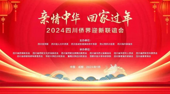 1月12日,由四川省侨联、省人大外侨委、省政协港澳台侨外事委、致公党四川省委,四川海外联谊会共同主办,四川各涉侨社会组织联合承办的“亲情中华·回家过年”2024四川侨界迎新联谊会在蓉举行。四川省人大常委会副主任祝春秀出席并致辞。四川省侨联主席刘以勤主持活动。侨界商协会、企业、科技等方面的海外侨胞和归侨侨眷代表450余人参加活动。