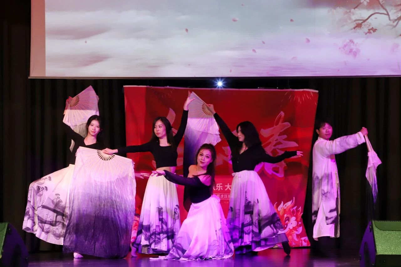 演出开始后,整场联欢会仿佛一幅画卷,在观众眼前徐徐展开。民乐悠扬,舞者翩跹,魔法光影闪耀,汉服秀则让人们仿佛穿越回了古老盛唐。《珠穆朗玛》《那就是我》《贝加尔湖畔》等独唱与合唱曲目的歌声在大厅中回荡,巍巍荡荡,动人心弦。最后,《难忘今宵》的经典旋律将整场联欢会推向终章亦是高潮,唤醒了全场观众心中对故园的思念。