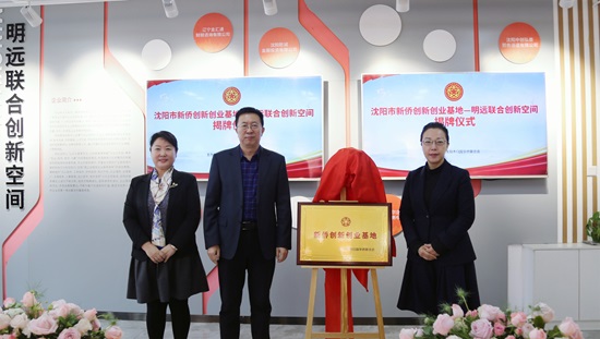 会议中,沈阳市侨联党组书记、主席张梅和皇姑区委副书记、统战部部长关威共同为“沈阳新侨创新创业基地”明远联合空间授牌。