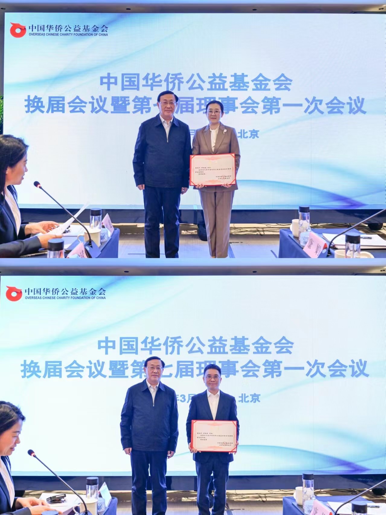 2024年3月27日上午,中国华侨公益基金会(以下简称侨基会)换届会议暨七届理事会第一次会议在京召开。中国侨联副主席程红出席会议并讲话,为中国侨联顾问、侨基会第六届理事会理事长乔卫颁发感谢状。