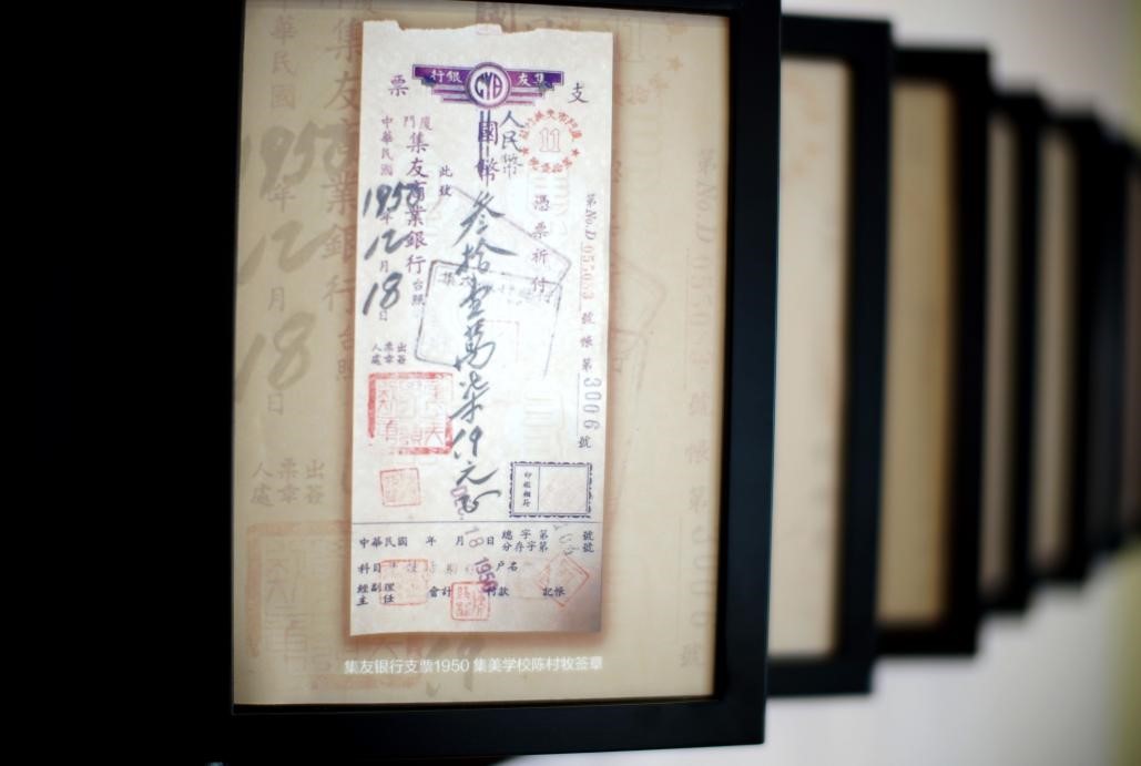 图注:本次展览中展出的集友银行侨汇支票(复制品)