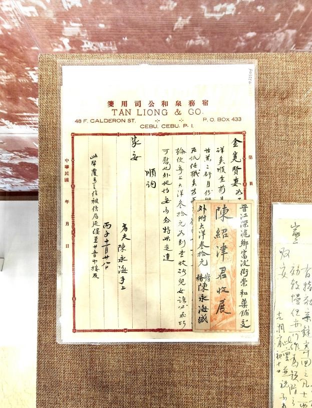 图注:展览侨批文物之一,1936年菲律宾宿务陈永海寄给晋江妻子陈绍君的侨批,附30大洋,提及托友人向家中带去奶粉及风寒药膏,关心家中儿女成长。