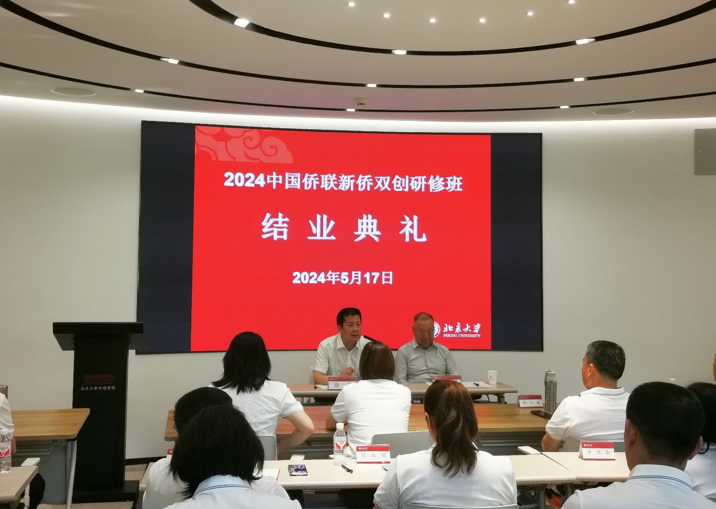 5月17日下午,由中国侨联主办,北京大学、中国侨联经济科技部、中国侨商联合会承办的“2024中国侨联新侨双创研修班”在北京大学圆满结业。中国侨联经济科技部二级巡视员徐伟、北京大学继续教育学院副院长白彦出席结业仪式并讲话。