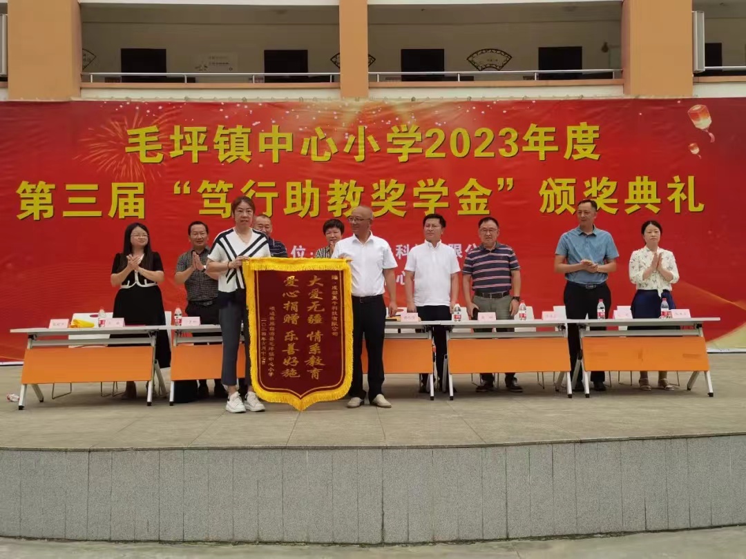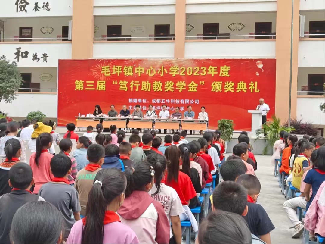 为弘扬新时代“嘉庚精神”,助力民族教育事业发展,近日,四川省政协委员、省侨商联合会副会长、成都五牛科技有限公司董事、总经理谭人俊一行到峨边彝族自治县毛坪小学举行第三届“笃行助教奖学金” 颁奖活动,四川省侨联副主席,乐山市侨联党组书记、主席殷志斌出席颁奖活动并讲话,乐山市侨联党组成员、副主席兼秘书长吴钢、峨边彝族自治县政协副主席吴涛等参加活动,毛坪小学党支部书记、校长张明东主持。毛坪小学全校师生及部分家长代表参加颁奖活动。