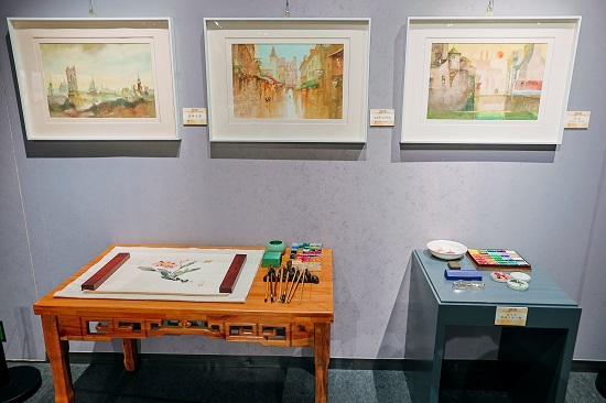 开幕式上,关乃平向侨博捐赠水彩、彩墨、油画作品4幅。李祖沛代表侨博接受捐赠并颁发证书。