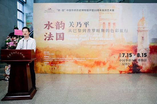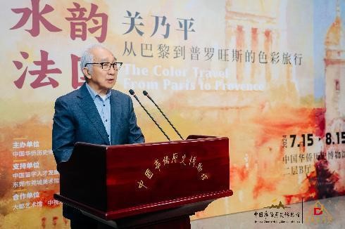 7月15日下午,由中国华侨历史博物馆主办的“水韵法国:关乃平从巴黎到普罗旺斯的色彩旅行”主题画展在中国华侨历史博物馆开幕。此次展览是侨博今年重点策划推出的“侨·蕴”中国华侨历史博物馆开馆10周年系列艺术展览的第四场。展览主要展示旅日华侨画家关乃平自1991年起赴法国考察期间,以当地风景为题,将对法兰西历史、文化、风情的理解与感动,创作的水彩丙烯与彩墨作品。