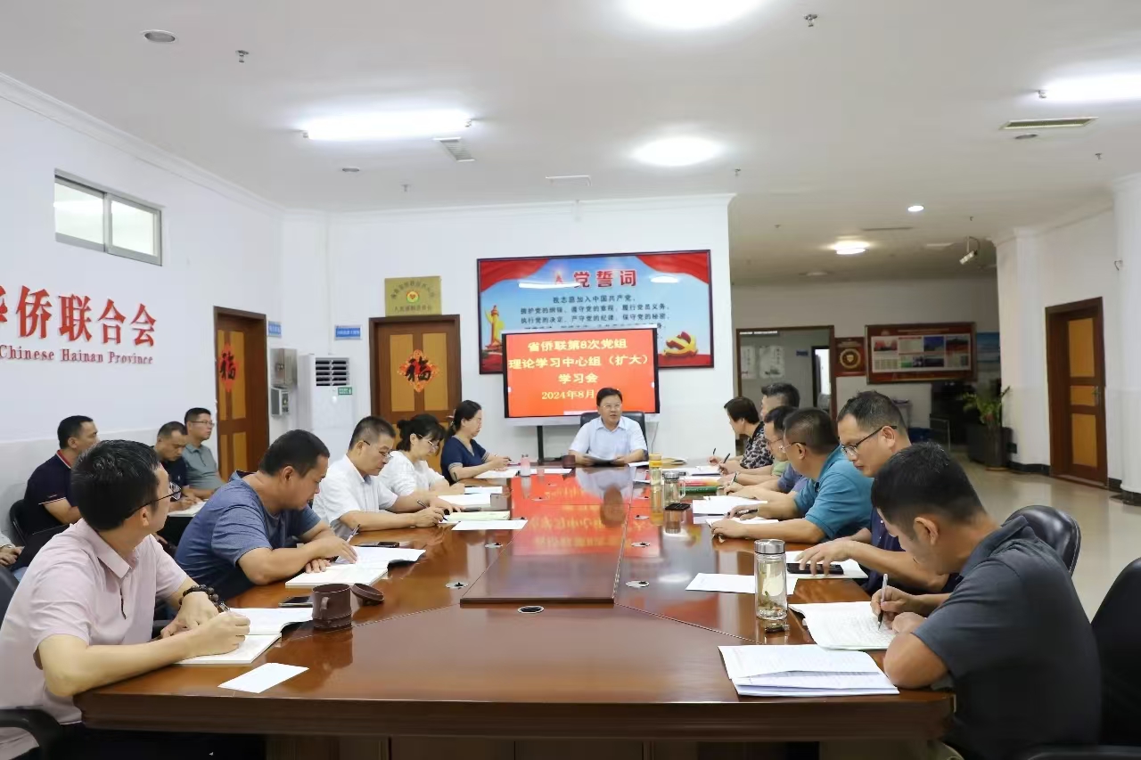 8月12日下午,海南省侨联召开2024年第8次党组理论学习中心组(扩大)学习会议,认真学习了《关于做好党的二十届三中全会精神学习宣传的通知》、习近平同志在党的二十届三中全会上的报告和讲话、《关于认真学习贯彻党的二十届三中全会精神深化党纪学习教育的通知》、冯飞同志在传达学习党的二十届三中全会精神时的讲话、《关于党员干部不当网络行为风险的预警提示》《中国历史上的腐败与反腐败》等重要论述、文件、著作等,省侨联党组书记、主席梁谋主持会议,省侨联党组成员、副主席苏燕、黄文慧,党组成员、秘书长李诚及机关全体干部参加会议。