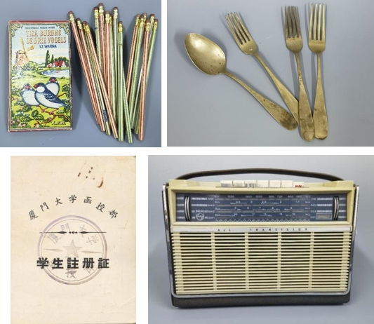 此次他们捐赠侨博的实物,包括从印尼带回国的文具(彩铅、铅笔、素描本、笔记本)、生活用品(收音机、餐具)、毕业证书、获奖证书、书籍、乐器等等,以及回国后获得的毕业证、喜报及荣誉证书。