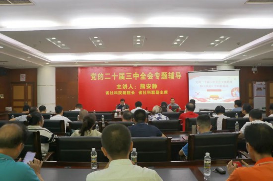 8月20日上午,海南省侨联邀请省宣讲团成员、省社科联副主席、省社科院副院长熊安静同志作党的二十届三中全会专题辅导。中国侨联副主席、省侨联党组书记、主席梁谋,省侨联党组成员、副主席苏燕、黄文慧以及省侨联机关党员干部、退休老干部、侨界社团、海外侨胞代表等50余人参加了专题辅导讲座。