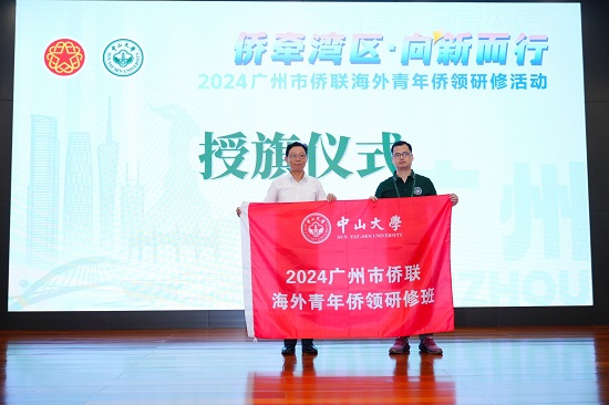 作为活动主办单位之一,广州市侨联党组书记、主席卞勇在启动仪式上向学员代表授旗。他表示,本次研习活动旨在把青年侨领请到湾区、牵手湾区、筑梦湾区,向新而行、共创辉煌。他寄语海外青年侨领,未来带着从百年名校中大结业的荣誉与使命,进一步加深爱国之情,深化与祖国、家乡的血脉联系,厚植家国情怀;进一步笃行强国之志,坚定文化自信,发出侨界声音,讲好中国故事;进一步奉献报国之心,积极引才引智,在推动广州高质量发展中找寻自己的创业创新之机,实现自身事业的更大发展。