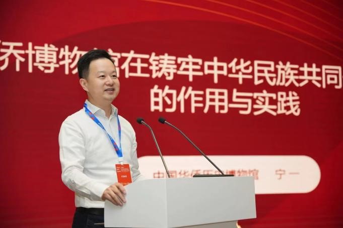 中国博协侨博专委会代理主任委员,中国华侨历史博物馆副馆长(主持工作)宁一以《华侨博物馆在铸牢中华民族共同体意识中的作用与实践》为题作交流发言。宁一表示,华侨博物馆作为收藏和展示华侨历史文化的专题博物馆,通过对中华优秀传统文化的展示、传承和阐释,进一步强化中华民族共同体的形象塑造,突出中华民族整体性和价值共识传播,从而更好地凝聚起海内外中华儿女的民族认同感和自豪感,华侨博物馆可以在三个层面为铸牢中华民族共同体意识发挥作用。一是“留根”,展示华侨爱国爱乡情怀增强对中华民族的历史认同。二是“铸魂”,传承弘扬中华优秀传统文化增强对中华民族的文化认同。三是“圆梦”,文明交流互鉴助力中国式现代化增强对中华民族伟大复兴的认同。新时代新征程,华侨博物馆应团结海外侨胞和广大归侨侨眷服务党和国家工作大局,坚持以同属中华民族为情感基础,以同源中华文化为精神纽带,铸牢中华民族共同体意识,不断优化文化服务和文化产品供给,推动原创展览走出去、请进来,发挥华侨融通中外的独特优势,弘扬中华优秀传统文化的同时,推进中国故事和中国声音的全球化表达,构建更有效力的国际传播体系,为全面推进中华民族伟大复兴贡献华侨文博力量。