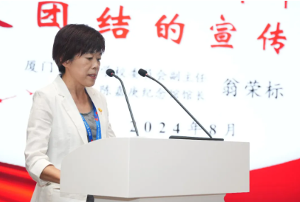 陈嘉庚纪念馆研究中心主任林东霞代表集美校委会副主任、陈嘉庚纪念馆馆长、一级调研员翁荣标以《打造海内外中华儿女大团结的宣传阵地》为题作交流发言,介绍了陈嘉庚先生生平及嘉庚精神内涵,该馆挖掘嘉庚精神“富矿”、生动诠释“四个与共”共同体理念,打造教育实践基地、着力铸牢中华民族共同体意识,发挥桥梁纽带作用、有力促进海内外中华儿女大团结等一系列铸牢中华民族共同体的工作实践以及对未来工作的思考。