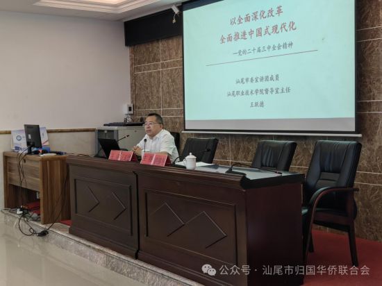 汕尾市委宣讲团成员、汕尾职业技术学院督导室主任王跃德围绕党的二十届三中全会基本情况和筹备情况、党的二十届三中全会的背景和重大意义、进一步全面深化改革的总目标和重大原则、以全面深化改革推进中国式现代化重要举措等方面对全会精神作了全面系统的解读,报告深入浅出、干货满满,为进一步深入学习贯彻党的二十届三中全会精神提供了生动教材和及时指导。