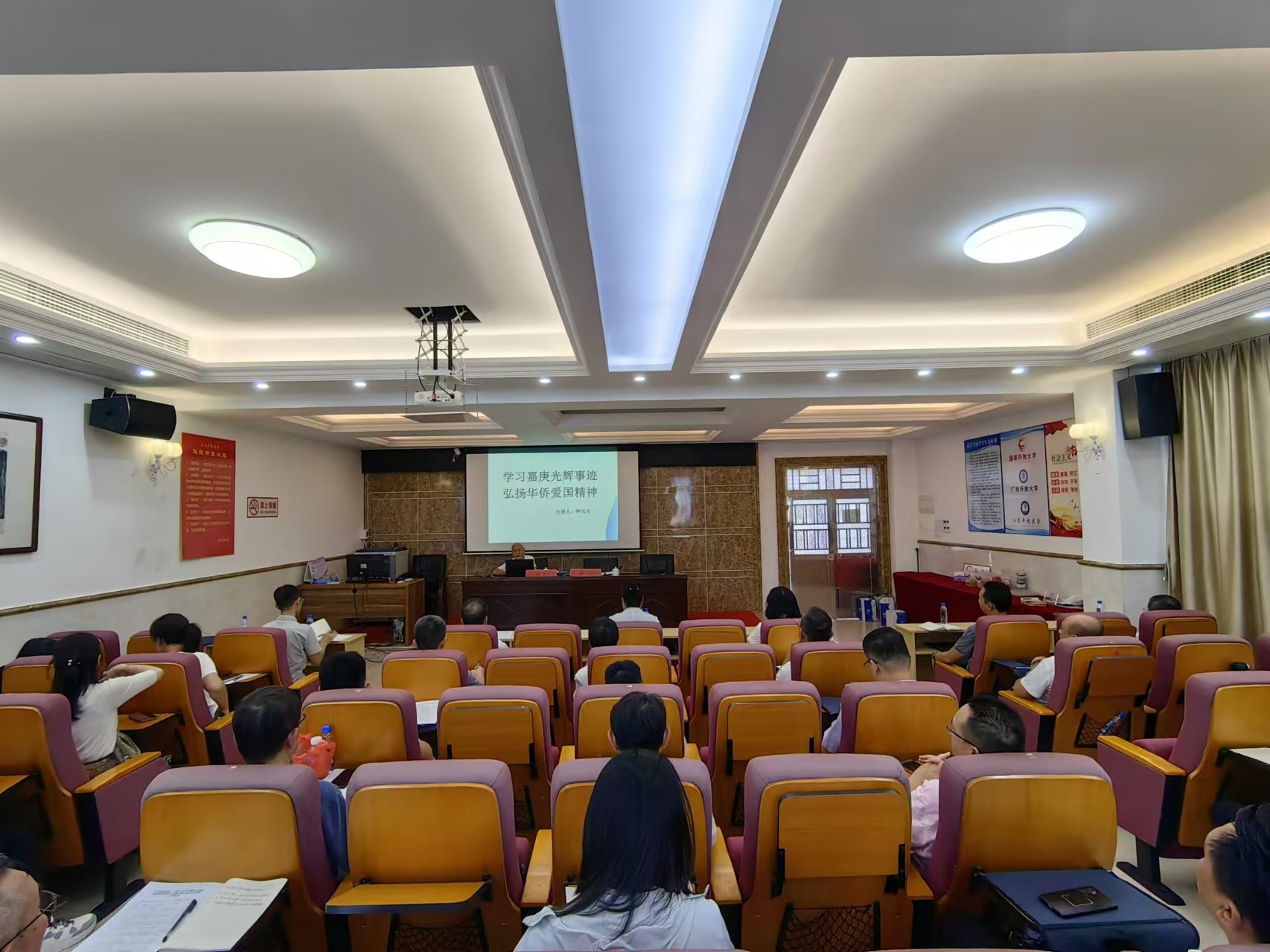 钟元丰以《学习嘉庚光辉事迹,弘扬华侨爱国精神》为题,围绕嘉庚先生生平,创办实业、以货救国,倾资兴学、教育救国,毁家纾难、抗日救国等方面,生动讲述了陈嘉庚先生波澜壮阔的一生。阐述了“嘉庚精神”的主要内容和精神实质,从他早年艰苦创业,到倾资兴学、支持抗战,再到为新中国建设不遗余力,每一个阶段都彰显着他的爱国情怀、无私奉献和民族大义。