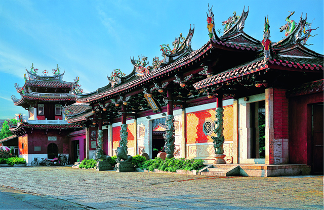 天后宫。是祭祀亚洲沿海地区最具影响力的海神妈祖的宫庙建筑群,也是世界范围妈祖信仰的重要传播中心。位于德济门遗址北面,始建于南宋庆元二年(1196),原名“顺济庙”,建筑规格伴随历代官方和民间对妈祖信仰的推崇而不断升格。1232年,妈祖祭祀纳入当地的官方奉祀彝典;1281年,朝廷敕封妈祖为“天妃”,泉州天妃宫奉祀列入国家祭典;1684年,朝廷敕封妈祖为“天后”,成为中国最高级别的海神。历史上对妈祖的敕封多达37次。