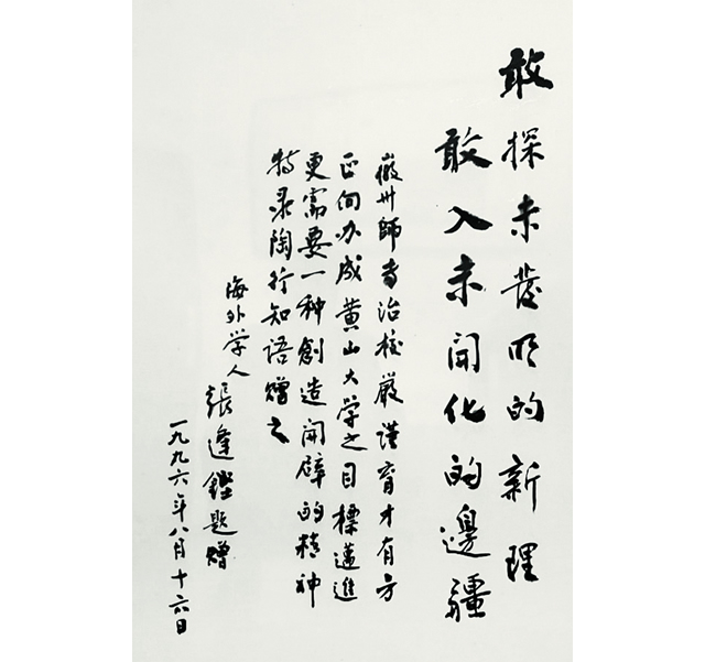 1996年,张逢铿为徽州师专(今黄山学院)题词