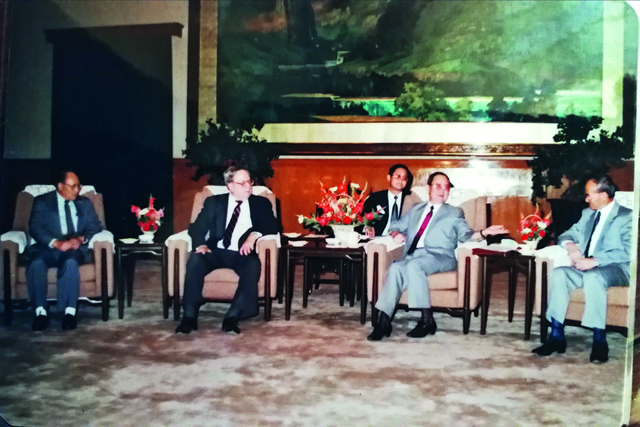1993年9月9日,宋健会见张逢铿(左一)、豪斯纳
