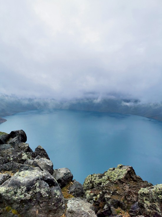 长白山秋天的序章,是在秋雨中展开书写的。在清晨终于如约而至的濛濛细雨中,开启了长白山秋天之旅。来长白山第一站肯定是天池了,虽说天公不作美,一路上看到的树木都是湿漉漉的,却也有着与天晴之时不一样的感觉,那苍翠的绿色越发清隽动人,倒让原本有些沉闷的心情也像是被雨水洗刷过一般,清爽了几分。换乘景区车辆时,看到不断涌来的人流,并未因这纷繁的细雨而凝滞,到处攒动的人群,像新晋的、移动着的花草,装点了长白山的秋景。有这种场面,有这么多雨势都阻挡不了的游览者,我们仰慕天池之名,也期待着天池的不负之意。长白山果然不枉神奇般的存在,一路的细雨霏霏,很是耐心,根本没有尽头的样子,想着是要雨中赏天池了。可车还没爬到山顶,雨居然停了,阴云退却,渐渐露出山峰的模样,白雾还在山腰间缠绕,峰顶却逐渐清晰起来。长白山气候瞬息万变,多为云雾所笼罩,使得天池若隐若现,去的人经常看不见全貌,绘就了天池“水光潋滟晴方好,山色空蒙雨亦奇”的绝妙景致。当地人介绍,有缘的人才能看到天池的真容,看来我们是有缘人了。兴奋地爬到天池边上,天已放晴,阳光倾泻而下,清明洁净。眼前经过雨水冲洗过的天池格外妖娆,池水深幽清澈,群峰环抱的水面五彩斑斓,蔚为壮观。不愧是大地的眼睛,清透明亮,似能看透人的内心似的,一点不像火山曾经喷发过岩浆的样子。