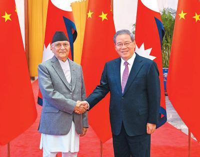 李强指出,中方坚定支持尼方探索符合本国国情的发展道路,愿同尼方加强发展战略对接,发挥高质量共建“一带一路”对两国合作的引领作用,积极扩大双向贸易投资规模,加强口岸、公路、铁路、航空、通信等联通,为尼泊尔更好从“陆锁国”变为“陆联国”增添动力。中方鼓励有实力的中国企业赴尼泊尔投资兴业,愿进口尼更多优质产品。双方要共同办好明年建交70周年系列纪念活动,深化旅游、教育、医疗等人文交流和地方合作,推动两国人民更加相知相亲。中方支持尼泊尔在国际地区事务中发挥更大作用,愿同尼方加强多边领域的协调配合。