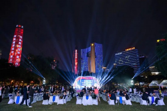 18点45分,东莞地标齐齐点亮,多幢摩天大楼外墙流光溢彩,将活动氛围推向了高潮。“侨连五洲·华裔杰青论坛”“海外才俊聚东莞”等主题字样在灯光与屏幕的交相辉映中熠熠生辉。随后,侨界代表带来深情的诗朗诵,以真挚的情感追忆陈嘉庚的家国情怀,引发全场共鸣。