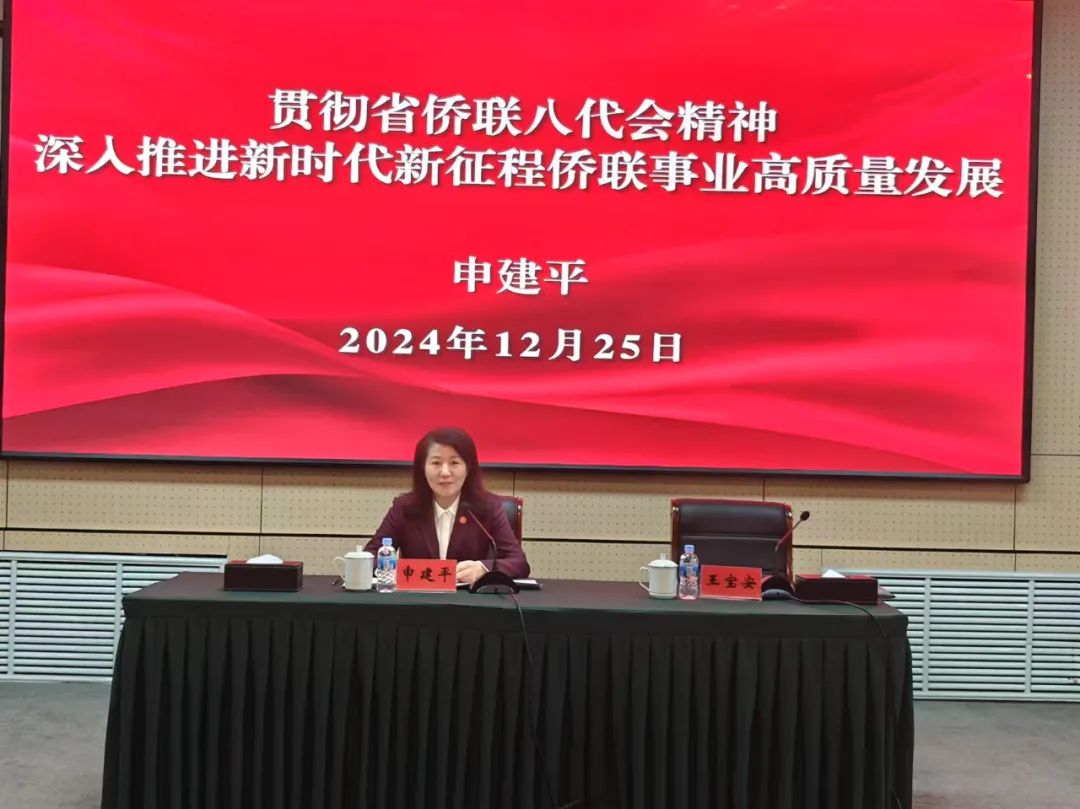 申建平首先传达了省委十三届七次全会暨省委经济工作会议精神,并以《贯彻落实省侨联八代会精神 深入推进新时代新征程侨联事业高质量发展》为题作专题讲座,结合侨联工作面临的机遇与挑战,使命与担当,为参训学员提高对省侨联八代会精神的认识理解提供了重要方法,增强了大家对新时代新形势下做好侨联工作的信心和决心。