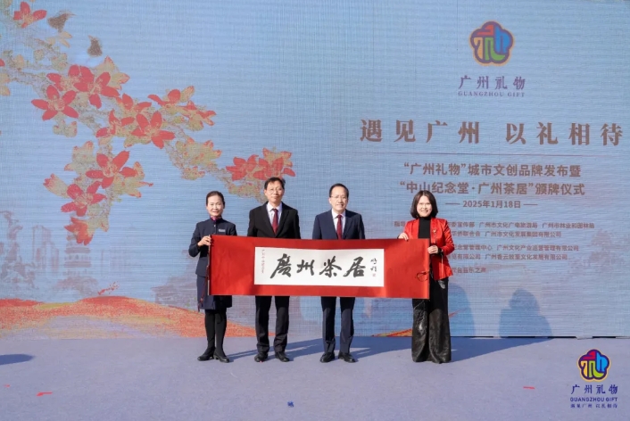 2025年1月18日,“广州礼物”城市文创品牌发布暨“中山纪念堂·广州茶居”颁牌仪式在广州中山纪念堂成功举办。随着用香云纱特别定制的“中山纪念堂·广州茶居”卷轴徐徐展开,国内首个“广州茶居”正式落户中山纪念堂。同日发布的还有首批广州特色文创产品“广州礼物”,“广州礼物”首店中山纪念堂文创商店“吾堂有礼”也在当天喜迎新张。