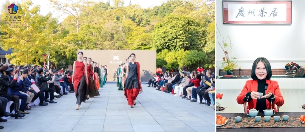 “中山纪念堂·广州茶居”户外,“广州礼物”之“锦绣风华”系列非遗时尚秀的展演带来一场唯美发的非遗艺术视觉盛宴。这场精彩时尚秀的组织者,广州香云故里董事长、荔湾侨联兼职副主席王雪表示,自己一直致力于香云纱的设计研发,后来远渡重洋到美国洛杉矶推广这一中华非遗文化。“今天,在中山纪念堂,我荣幸获颁授‘广州茶居’题匾,深感重任在肩。我由衷地希望,‘中山纪念堂·广州茶居’成为海外华侨华人归乡的第一站。在这里,大家能看到广州的蓬勃发展和粤港澳大湾区的日新月异。闲暇时,多来‘广州茶居’喝杯茶,谈天说地,共享美好时光。”