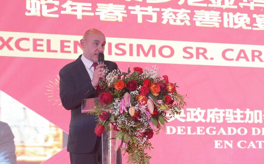 西班牙中央政府驻加区代表Carlos Prieto致辞时表示,中国与加泰罗尼亚长期友好,这是西班牙与中国在商业、经济、人文和文化等方面关系日益紧密的重要连接,促进两国多年后建立全面战略伙伴关系。同时,他再次赞扬了加区华人群体在新冠疫情期间的团结奉献精神。