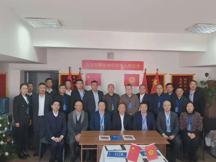 吉尔吉斯斯坦华侨华人联合会领导有:耶尔波力.达巴,段旭熠,罗选成,杨震一同参加。