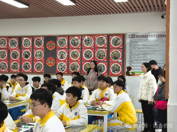 接着,华南师范大学侨联一行前往四会市华侨中学考察交流。华南师范大学侨联一行考察了学校心理特色教育和美术学科建设,观看了剪纸传统文化的教学。在交流中,华南师范大学侨联随行心理学专家对华侨中学在心理特色教育所取得的成绩表示赞赏,并提出了珍贵的意见建议。同时,华南师范大学侨联一行还与华侨中学探讨了交流合作方向。
