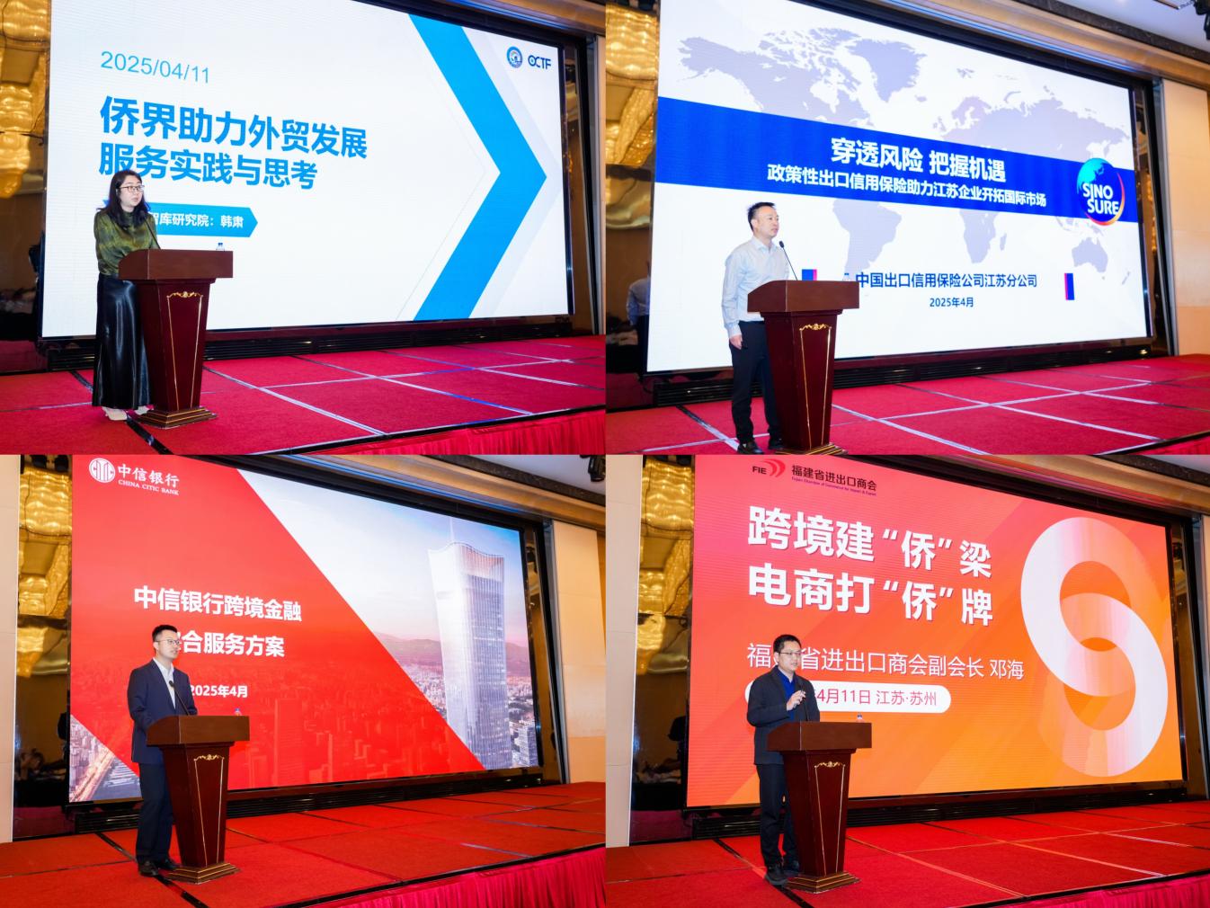 活动期间,还针对外向型侨资企业的痛点堵点,提供专业化的政策指导和全场景的案例辅导,分别邀请江苏省税务局作江苏省出口退税政策解读,中信集团协同委江苏区域分会宣介中信助侨综合服务方案中有关跨境金融服务体系情况,中国信保江苏分公司介绍了跨境保险专属服务,深圳市侨商智库研究院分享了以海外展会、海外仓平台服务侨界跨境电商发展的成功案例,福建省进出口商会也介绍了中国进出口跨境电商联盟有关情况。与会代表纷纷表示,活动为企业和产品出海搭建了大平台,带来了大礼包,更让他们看到了海外的侨界大网络,他们有更强的信心应对当前国际经贸形势,也有更足的底气出海拓市场。