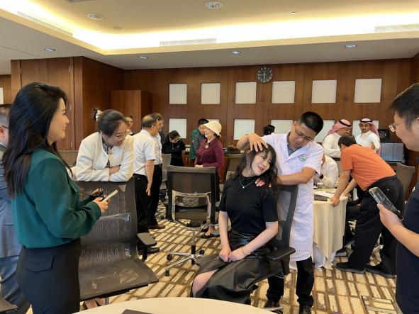在沙期间,中医团与中国驻沙特阿拉伯大使馆进行了工作交流;拜访了拉希德家族企业的Inaya医学院和吉达市长家族企业NESMA,围绕陕西中医药在沙特发展进行了探讨交流;走访了沙特阿拉伯陕西商会和吉达华人商会等华侨华人社团,听取他们对中医药出海的意见建议,并组织开展了中医暖侨及文化交流活动。