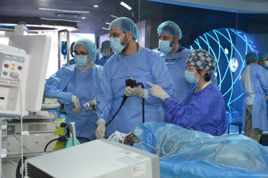 2023年7月28日,在位于南京的江苏省人民医院,消化内镜科医生为埃及学员进行“手把手”内镜教学。江苏省人民医院以消化内镜为临床技术试点,与巴基斯坦、埃及等国家和地区的医疗机构开展医疗试点合作,采取“走出去”“请进来”的方式,传授先进医疗技术,加强合作交流。