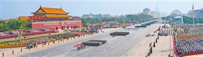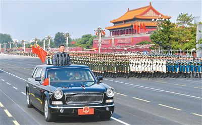 雄壮的军乐声中,习近平乘车沿着宽阔的长安街,依次检阅13个徒步方队、1个战旗方队、22个装备方队。受阅部队军容严整、意气风发,铁甲战车整齐列阵、威风凛凛。这是人民军队奋进建军百年的崭新亮相,这是中华民族捍卫世界和平的坚定宣示。