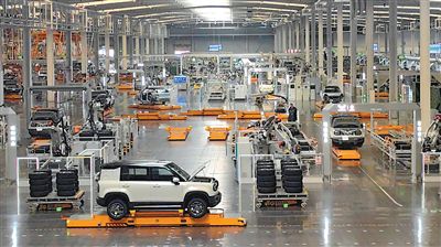 图为广西柳州市一家汽车企业车间正在有序生产。