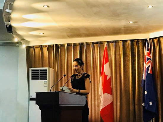 来自加拿大的营员忻月代表全体营员发言。她说对本次夏令营中精心安排的汉语课程、中华文化体验和地域文化考察等活动充满期待,这是她第三次参加“亲情中华”夏令营活动,相信一定能收获颇丰,满载而归。