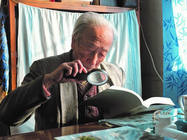 北京三环北边的一个普通老居民区,叩开三楼那间一居室的房门,在狭窄的空间里小心挪步,一间书桌,水泥地面,墙面斑驳,书桌、沙发、单人床,甚至窗口绘着竹叶的灰蓝色窗帘、床上已然褪色的蓝白格床单,让人想起上世纪80年代的老旧模样,熟悉而又遥远。房间里并不明亮,阳光透过仅有的一扇窗,洒在临窗而坐的老人清癯的脸上,勾勒出深深的岁月痕迹。