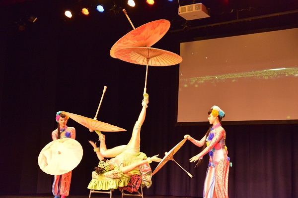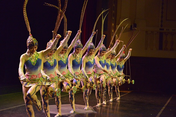 中国杂技团为侨胞表演《转花碟》