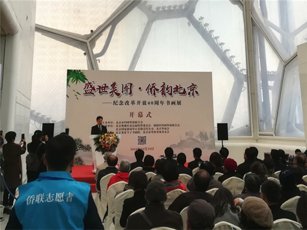 10月29日上午,“盛世美图·侨韵北京——庆祝改革开放40周年”书画展在国家游泳中心(水立方)举行。中国侨联副主席齐全胜出席并宣布书画展开幕,北京市侨联党组书记赵宏生致辞,北京市侨联主席荣洋和有关方面负责人以及书画作者、北京市侨界代表200余人出席。