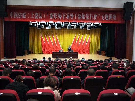 11月8日,应中国侨联定点扶贫县——江西省上饶县邀请,中国侨联法律顾问委员会选派资深律师、北京嘉观律师事务所主任韩雪,在江西上饶县举办“新形势下领导干部依法行政”专题讲座。党委政府300余名领导干部参加了专题辅导。
