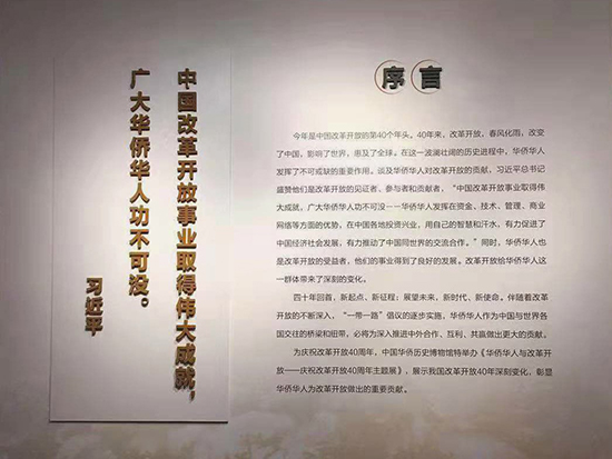 此次展览由中国侨联主办、中国华侨历史博物馆承办,为中国侨联庆祝改革开放40周年系列活动之一。