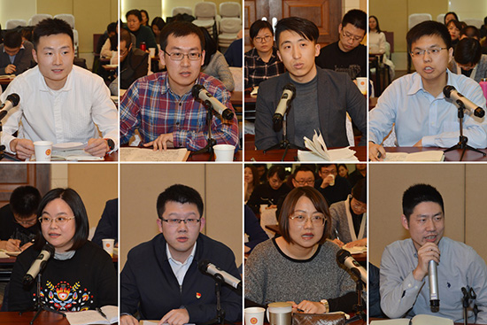 与会青年干部围绕学习贯彻习近平新时代中国特色社会主义思想和党的十九大精神,对深化侨联改革,促进侨联事业发展提出了许多有益的意见建议。大家普遍认为,会党组高度重视青年干部工作,多次召开座谈会倾听青年干部心声,大家深感振奋,备受鼓舞。宁一同志表示,青年干部要勤学习、多交流、守规矩、善实践,建议会党组在青年干部学习深造、交流互动等方面提供更多制度保障。蔺轩同志结合工作实际,从成立参政议政工作领导小组、完善公职律师制度等方面提出了工作建议。林萧凡同志从团委工作角度出发,建议将青年干部工作纳入机关党委整体工作部署,建立青年工作联席会议制度,为青年干部搭建深入基层锻炼、开展调研和志愿服务的平台。王茜同志建议会领导专门为青年干部讲党课,给予更多指导,希望机关党委、团委组织更多的交流活动和培训。赵若晨同志结合地方侨联挂职经历,建议关注侨务资源较少地区,加强全国侨联“一盘棋”工作部署。张丽莹同志作为国侨办转隶干部,谈到了自己融入侨联组织、投身侨联工作的荣誉感和归属感。杨紫同志结合生活体验,以小家庭换位思考侨联“大家庭”,谈到青年干部要保持初心、修炼恒心、保持简单心,做快速奔跑的侨联“追梦人”。丁强同志希望加强与海外二、三线城市侨胞的联谊联络工作,建议为青年干部提供专业培训和挂职锻炼机会。秦文龙同志建议进一步提升侨联形象,青年干部要当好自信的人、做好务实的事。高涌同志建议整合侨务资源,加强侨务工作顶层谋划,创造性开展工作。罗扬同志建议加强机关和事业单位干部交流互动,为研究工作提供更多支撑。周臻扬同志讲述了自己担任驻村第一书记期间的心路历程,建议会党组多创造机会让青年干部在艰苦地区锤炼本领。李文慧同志分享了对“一生、一心、一事”精神的感悟,建议践行“勤学、苦干、务实”。张昊同志谈到加入侨联大家庭后的感受,建议组织机关优秀领导干部交流工作经验,分享工作心得,帮助青年干部相互学习、共同成长。