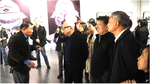 王卫光先生(右一)介绍展览拍摄情况