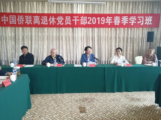 2019年5月15日,中国侨联离退休党员干部学习班在京举行。中国侨联党组成员、副主席、机关党委书记隋军出席开班仪式并讲话。离退休干部党支部书记苏渊海主持开班式,中国侨联顾问林兆枢、黄军军、李祖沛、陈兰通、唐闻生、林淑娘、王宏及离退休干部党支部共50余名老同志参加了本次学习班。