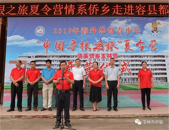 7月9日上午,由中国侨联主办,广西区侨联、玉林市侨联承办,容县侨联、新西兰金玉中文学校等协办的2019年“寻根之旅”夏令营—广西玉林营在容县都峤中学开营。广西区侨联海外联谊部部长曹红,市侨办主任赖耿,市侨联副主席陈毅南,容县县委常委刘城亮等与新西兰华裔学生、领队老师以及都峤中学部分师生参加开营仪式。曹红为夏令营授旗并宣布开营。
